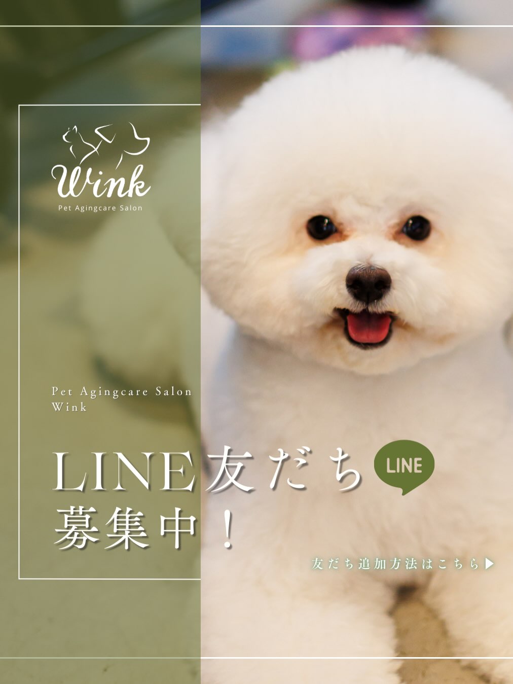#Wink#エイジングケア#トリミングサロン#トリミング#大阪トリミング#堺市トリミング#北野田#トリマー#オゾンペットシャワー#炭酸シャンプーマシン#ピュアミスイオンスチーマー#ナノペット#皮膚ケア#大型犬大歓迎#犬#猫#line友だち追加